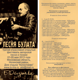 Фестивально-концертный Портал »   Россия. Московский ф/о. »   Песня Булата - 2013