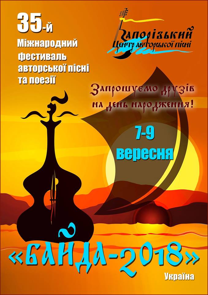 Друзі! Слідкуйте, будь ласка, за нашими сторінками на FB та ви будете у курсі всього, що планується та відбувається. Поширюйте інформацію про наш фестиваль, запрошуйте на нього друзів! Долучайтеся до святкування нашого спільного ювілею, бо фестиваль «Байда» є ,без перебільшення, всеукраїнським надбанням бардівської спільноти. Шануймося, бо ми того варті! Будьмо!